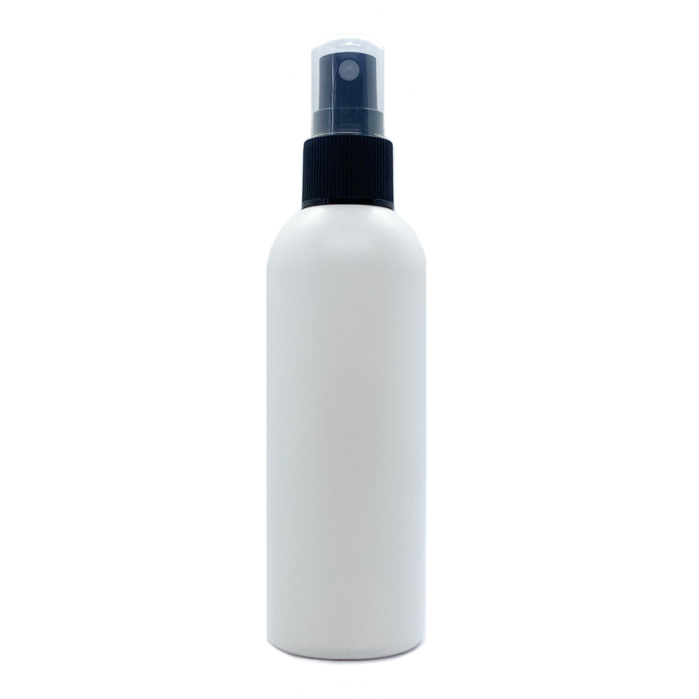 Flacon blanc opaque 100 ml + pompe spray noire Idéal pour des sprays aromatiques (mélange d’huiles essentielles et d’alcool dénaturé) Matière : HDPE polyéthylène de haute densité