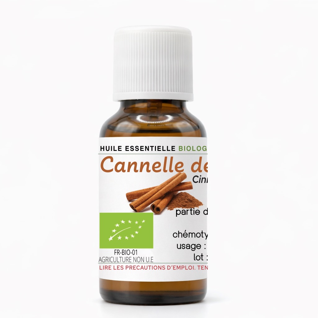 L’huile essentielle de Cannelle de Chine (Cinnamomum cassia), issue de l’agriculture biologique, est traditionnellement recherchée pour ses usages liés à la vitalité, l’énergie et la stimulation sensorielle. Elle est particulièrement appréciée dans les synergies aromatiques réchauffantes, les huiles de massage diluées et les préparations artisanales pour créer une ambiance tonique et chaleureuse.