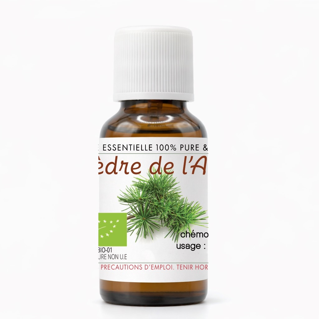 L’huile essentielle de Cèdre de l’Atlas (Cedrus atlantica), issue de l’agriculture biologique et certifiée FR-BIO-01, est traditionnellement recherchée pour ses usages liés à la soutien émotionnel, à la sensation de calme intérieur et à la soin de la peau. Elle est souvent utilisée dans les synergies aromatiques pour créer une ambiance apaisante, dans les massages ou les préparations cosmétiques diluées.