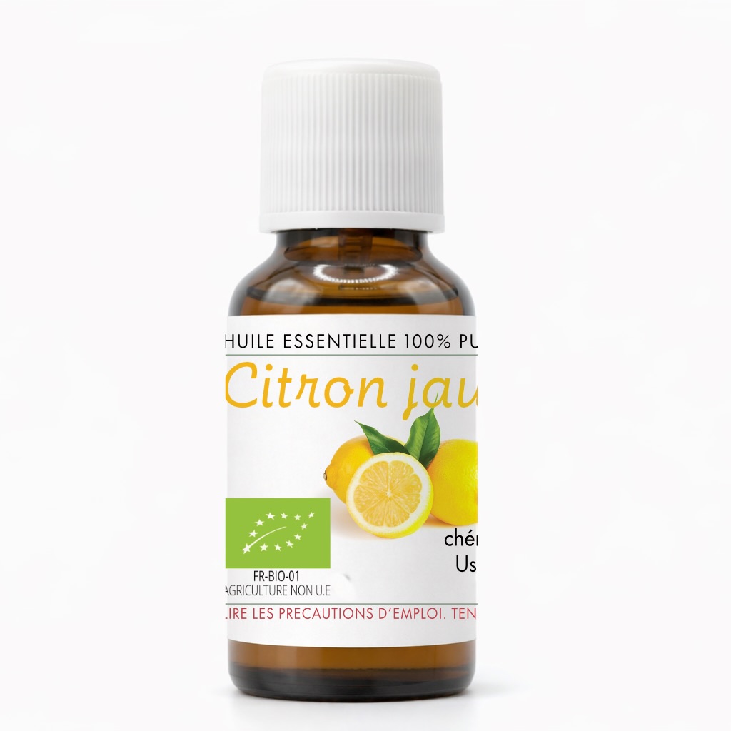 L’huile essentielle de Citron jaune (Citrus limonum) est reconnue en aromathérapie pour ses usages traditionnels liés aux fatigues passagères, manque de concentration et inconfort digestif léger. Elle est notamment utilisée pour accompagner les périodes de baisse de tonus, favoriser la digestion après les repas et apporter une sensation de clarté et de fraîcheur mentale.