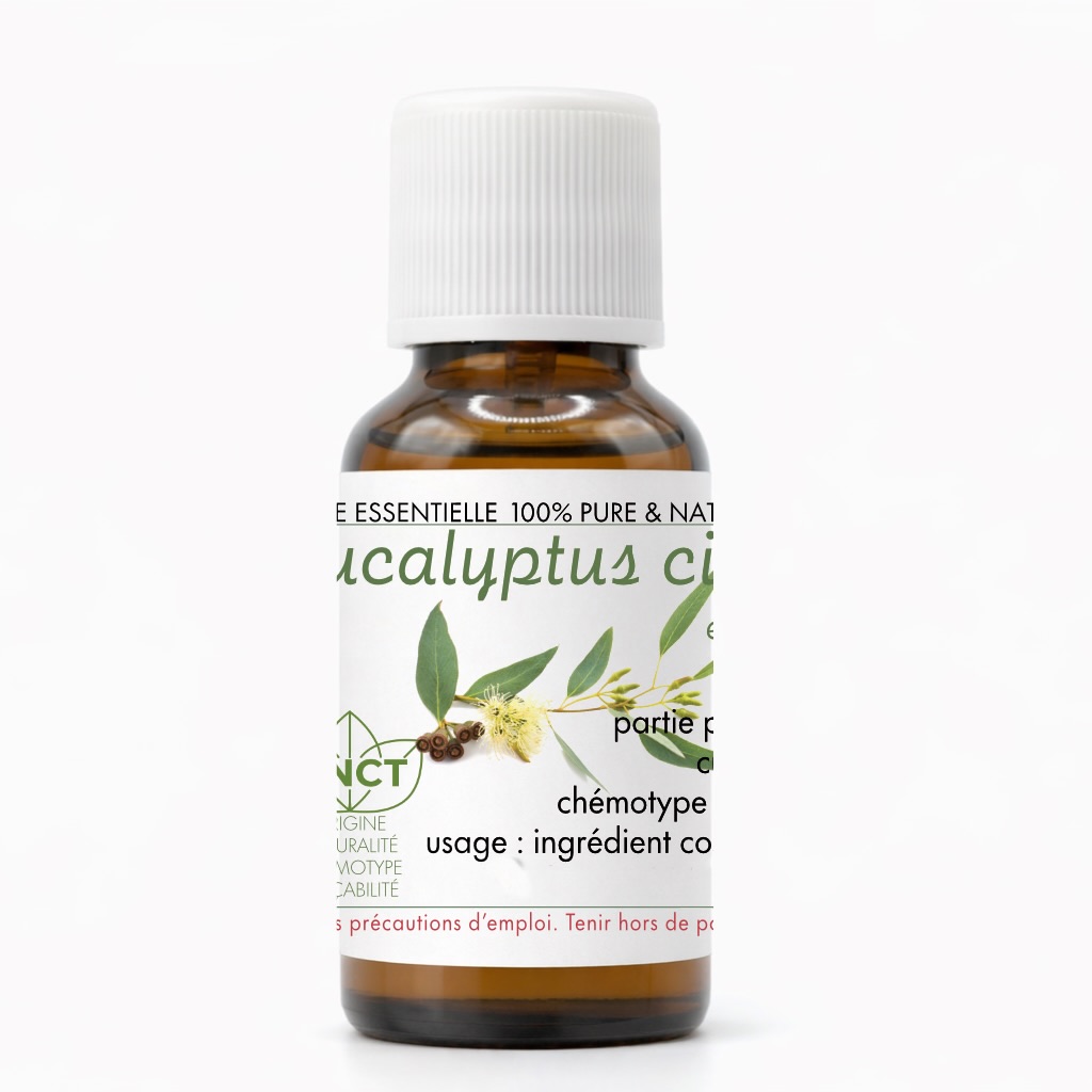 L’huile essentielle d’Eucalyptus citronné (Corymbia citriodora), certifiée Label ONCT, est reconnue en aromathérapie pour ses usages traditionnels liés aux inconforts respiratoires légers, tensions musculaires passagères et fatigue temporaire. Elle est notamment utilisée pour soutenir le confort respiratoire, accompagner les sensations de lourdeur musculaire et créer une atmosphère fraîche et tonique.