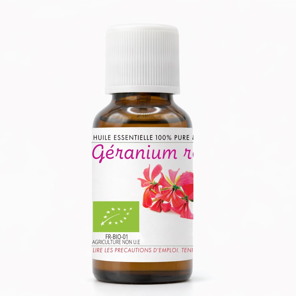 L’huile essentielle de Géranium rosat (Pelargonium × asperum), certifiée Biologique (FR-BIO-01), est reconnue en aromathérapie pour ses usages traditionnels liés aux peaux sensibles, inconfort cutané léger et fatigue émotionnelle. Elle est notamment utilisée pour accompagner les soins de la peau, apporter une sensation de confort et favoriser un état d’apaisement.