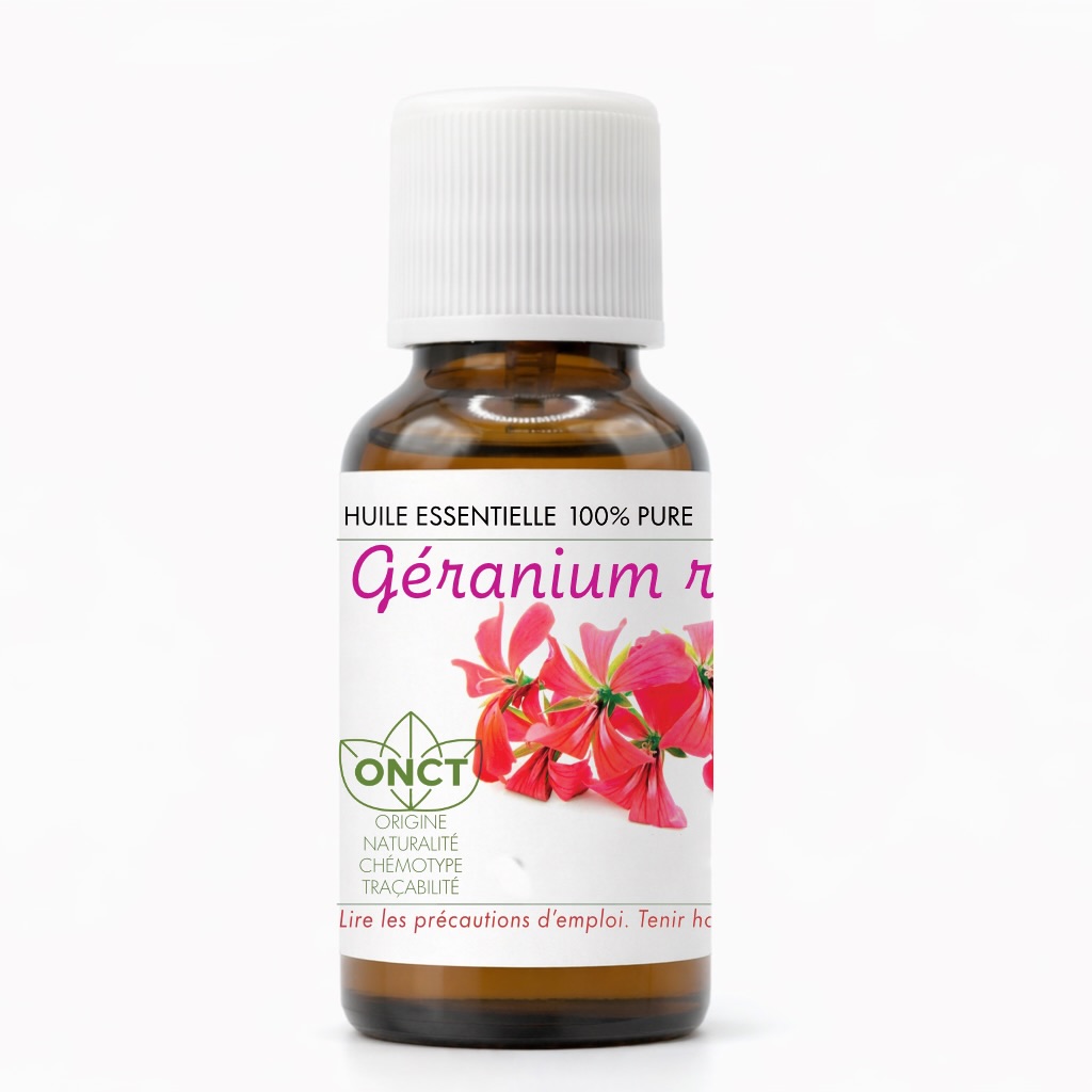 L’huile essentielle de Géranium rosat (Pelargonium × asperum), est reconnue en aromathérapie pour ses usages traditionnels liés aux peaux sensibles, inconfort cutané léger et fatigue émotionnelle. Elle est notamment utilisée pour accompagner les soins de la peau, apporter une sensation de confort et favoriser un état d’apaisement.