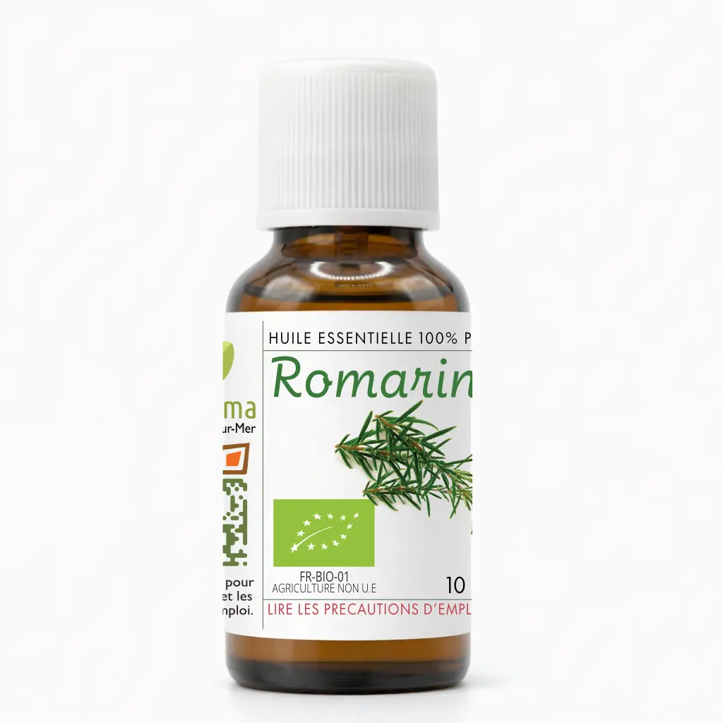 L’huile essentielle de Romarin à Cinéole (Rosmarinus officinalis ct. 1,8-cinéole), certifiée Biologique (FR-BIO-01), est reconnue en aromathérapie pour ses usages traditionnels liés aux tensions respiratoires légères, fatigue passagère, manque de concentration et inconfort musculaire occasionnel. Elle est particulièrement appréciée pour ses propriétés stimulantes et respiratoires.