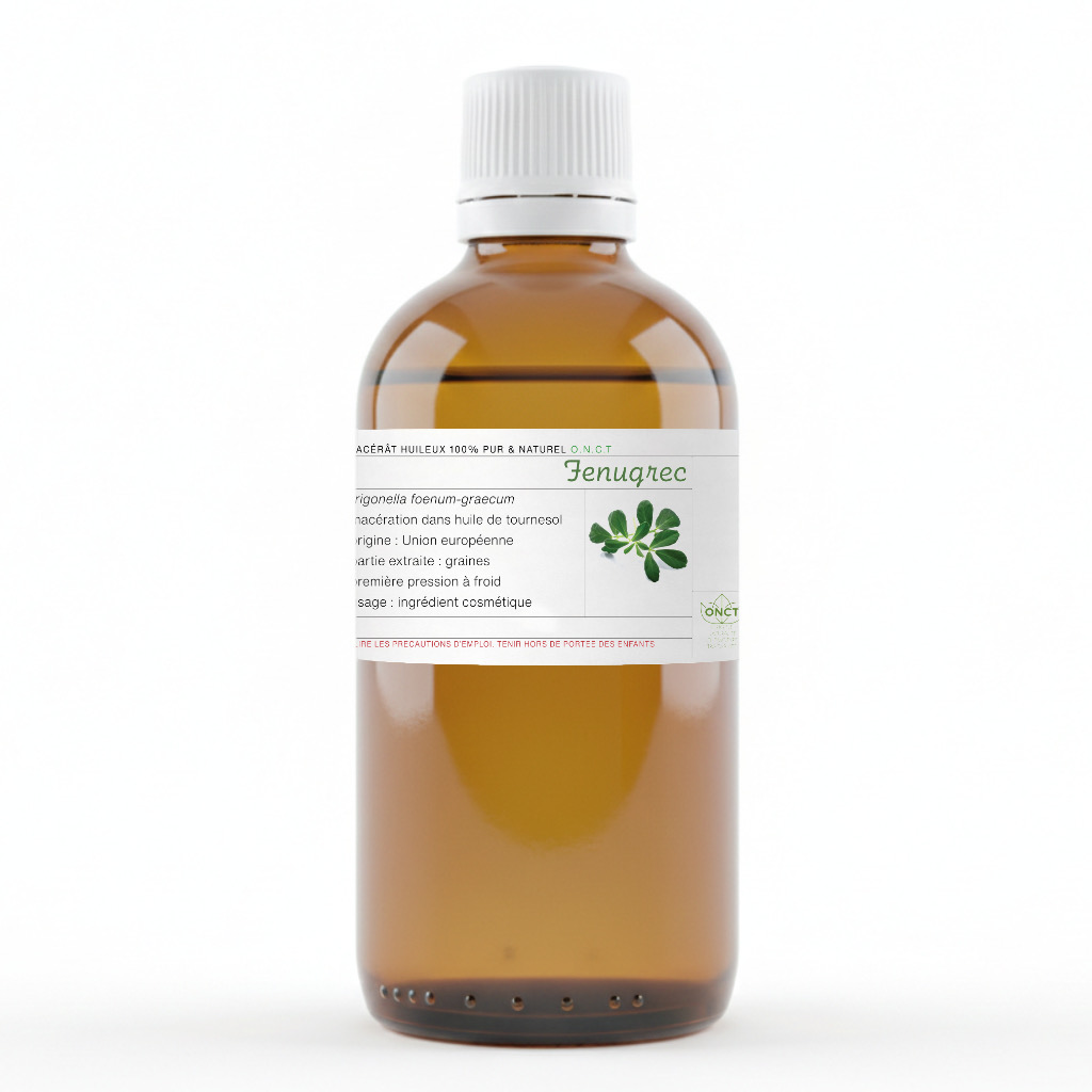 Macérât obtenu par infusion lente à froid des graines de Fenugrec (Trigonella foenum-graecum) dans une huile végétale, ce macérât huileux 100 % pur et naturel est reconnu pour ses propriétés nourrissantes, assouplissantes et revitalisantes. Originaire d’Inde et conditionné dans un flacon en verre ambré avec compte-gouttes, il conserve toutes ses qualités naturelles.