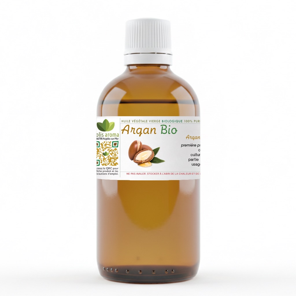 Obtenue par première pression à froid des noix d’Argan (Argania spinosa), cette huile végétale 100 % pure et naturelle est reconnue pour ses propriétés nourrissantes, assouplissantes et régénérantes. Certifiée biologique (FR-BIO-01) et conditionnée dans un flacon en verre ambré avec compte-gouttes, elle conserve toutes ses qualités naturelles.